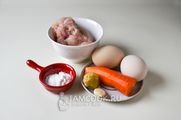 Соберите продукты для приготовления китайских яичных рулетов желаний с фаршем. Фарш традиционно берется свиной, но можно взять и куриный. Морковь, чеснок вымойте, почистите.