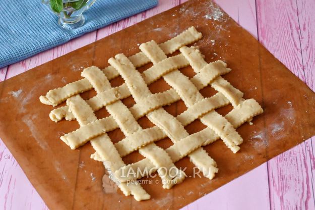 Решётку удобно делать на коврике для выпечки или пергаменте, чтобы потом вместе с ним перенести на пирог.