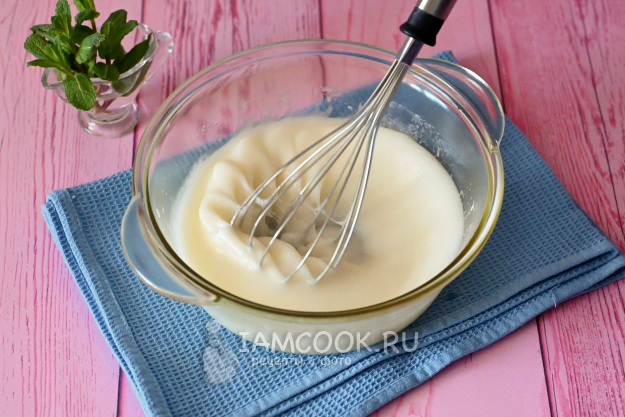 Тщательно смешиваем всё венчиком до полного растворения сахара. Получится масса, по виду напоминающая сгущёнку.
