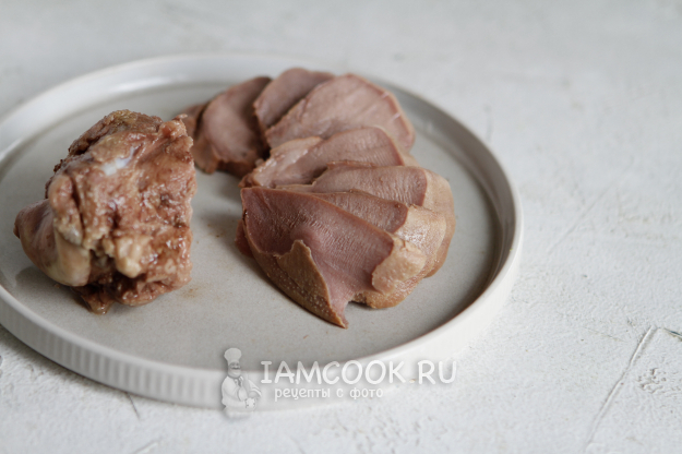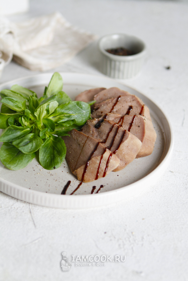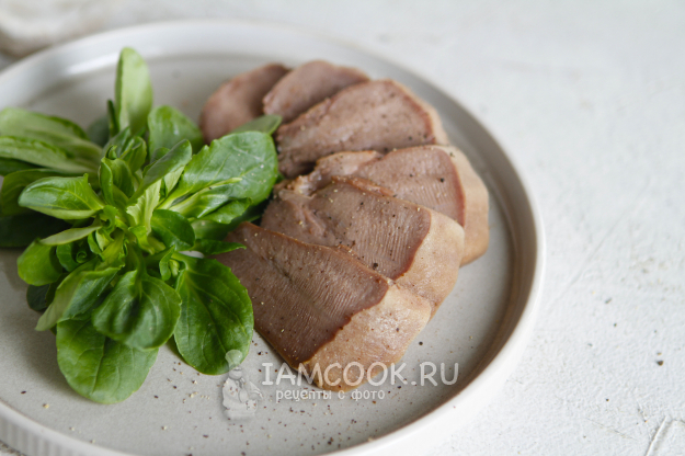 Свиной язык, приготовленный по технологии су-вид, готов.