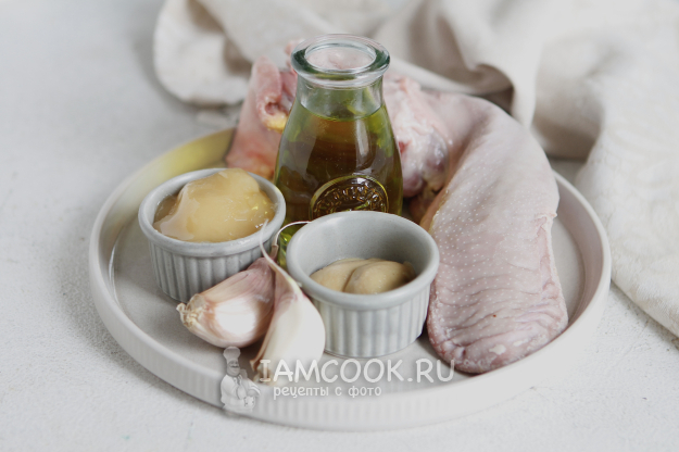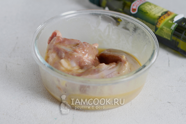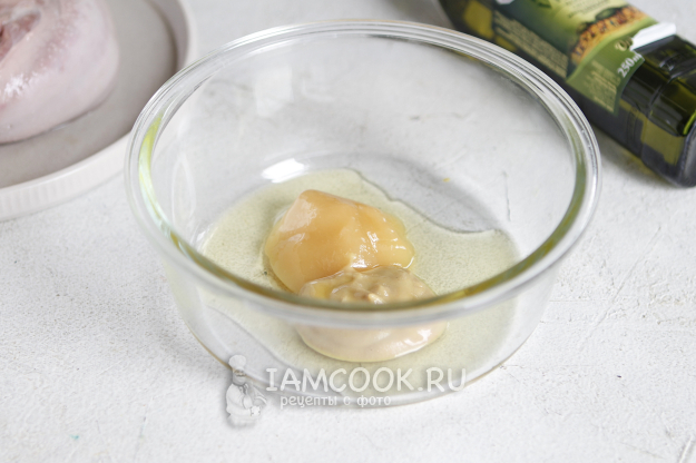 В небольшой чаше смешайте мёд, горчицу и оливковое масло.