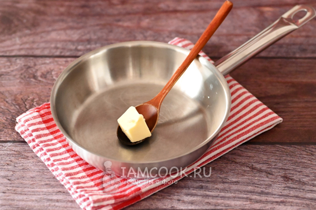 Возьмите сковороду или сотейник с толстым дном. Растопите в нём кусочек сливочного масла.