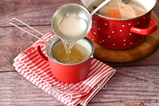 Имейте в виду, что при варке бульона часть воды выкипит, поэтому берём воду с небольшим запасом.