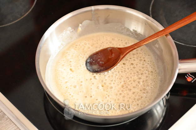 На этом этапе мне было удобней снять сковороду с плиты, чтобы не было сильного кипения.
