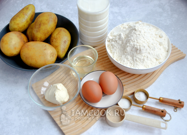 Чтобы приготовить уральские шаньги с картошкой, соберите ингредиенты по списку к рецепту.