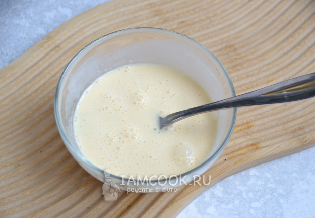 Для смазывания шанег перед выпечкой смешайте яйцо со сметаной.