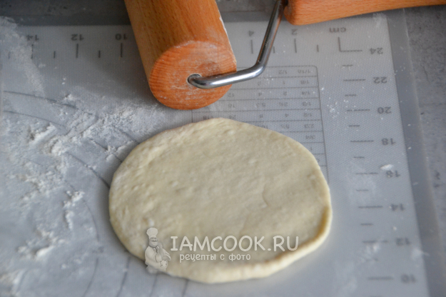Включите духовку на разогрев в режиме "верх-низ" до 180 градусов. Раскатывайте тесто в тонкую лепешку.