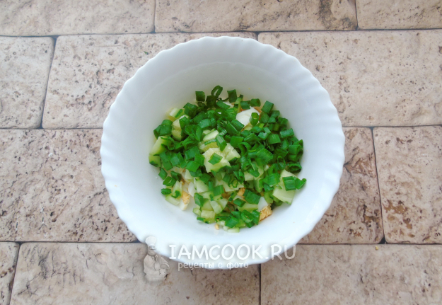 Зеленый лук помойте и мелко нарежьте.