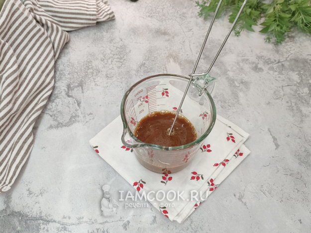 Добавьте к крахмальной воде сахар, уксус, соевый соус, тщательно перемешайте.