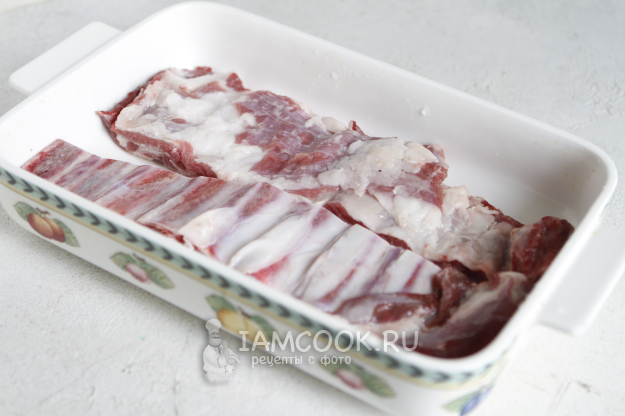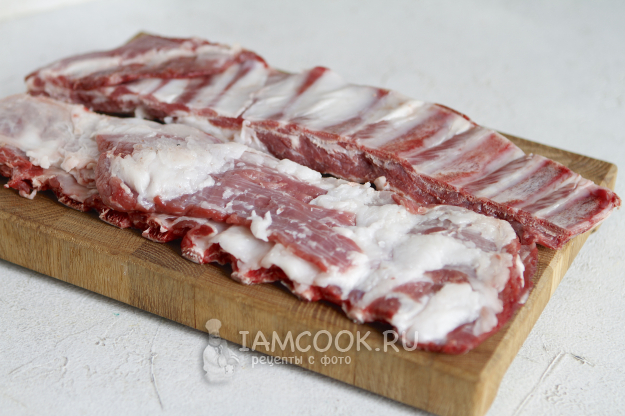 Ребрышки я слегка зачистила, сняла пленку, промыла под проточной водой и обсушила.