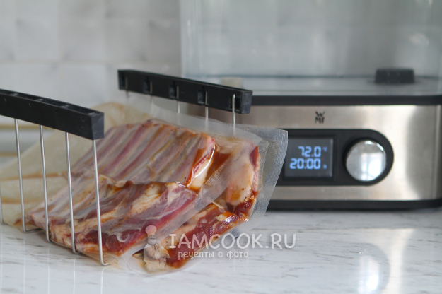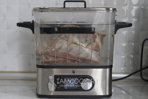 Разные источники рекомендуют разное время и температуру приготовления. Я готовила бараньи ребрышки 20 часов при температуре 72 градуса.