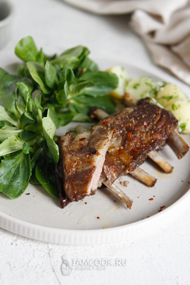 Мясо получилось настолько нежным, что оно с легкостью отделялось от костей и таяло во рту. К баранине я приготовила молодой отварной картофель.
