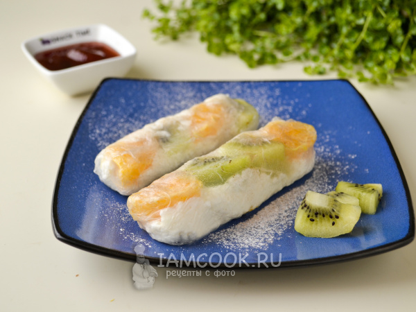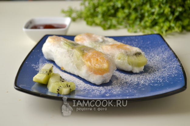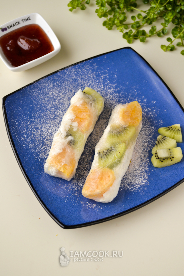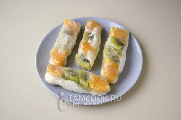 Приготовьте спринг-роллы из оставшихся фруктов, творога и рисовой бумаги. Готово!