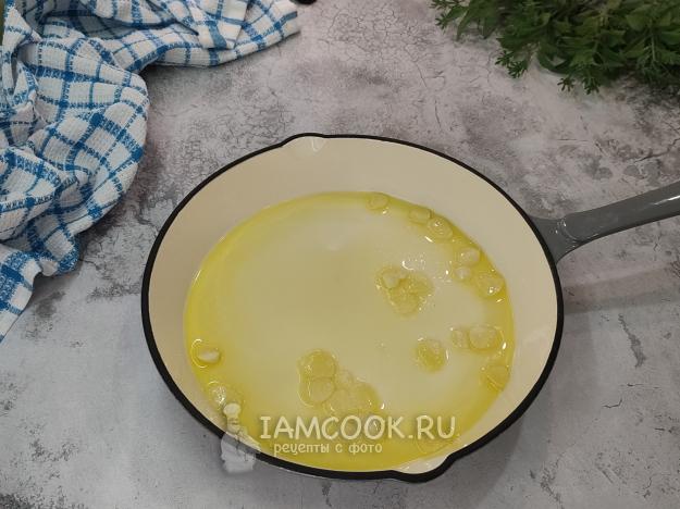 В сковороде разогрейте оливковое масло, на среднем огне обжарьте чеснок, буквально минутку, до появления приятного аромата.
