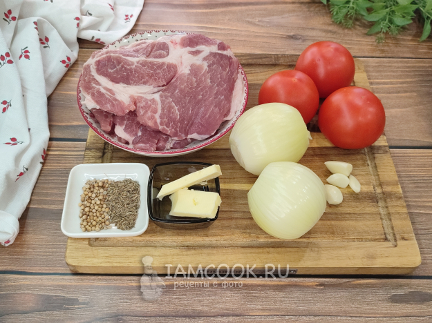 Соберите ингредиенты для приготовления свиной шеи в горшочках в духовке. Специи, конечно, можете взять ваши любимые, мне лично в сочетании с мясом нравятся эти.