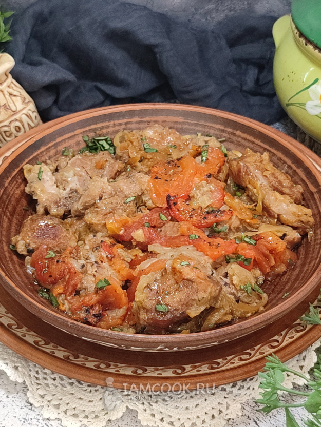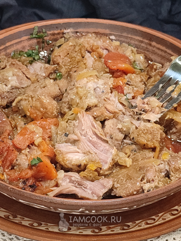 Спустя 2,5 часа духовку выключаем, но открываем не сразу, а через минут 15 (чтобы не было температурного шока для керамики). Все растомилось, растушилось, как мы и хотели)). Свиная шея в горшочках в духовке готова и манит сумасшедшим ароматом!