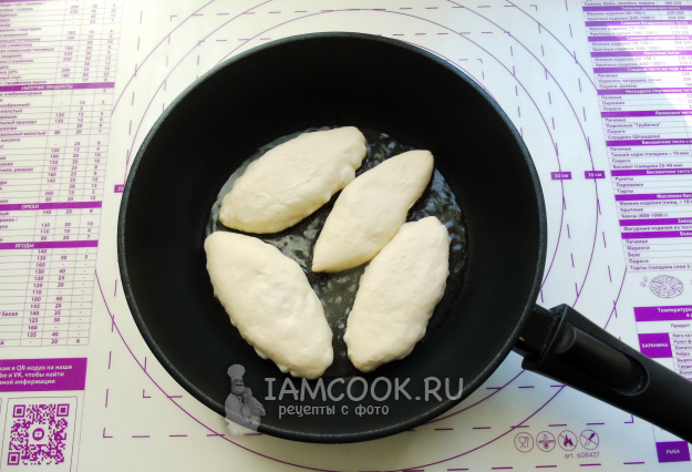 После сформированные пирожки выложите на горячую сковороду с растительным маслом.