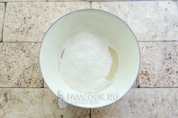 Затем налейте растительное масло. Насыпьте соль и перемешайте.