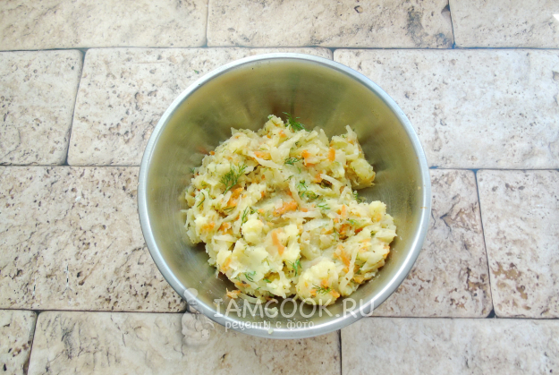 После добавьте нарезанный укроп и перемешайте с картофельным пюре.