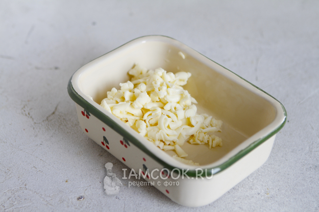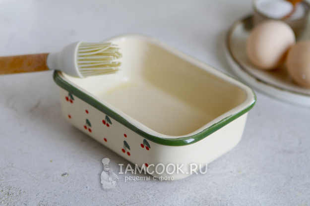 Подготовьте подходящую форму для запекания, которая поместится в корзину вашего аэрогриля. Смажьте ее маслом.