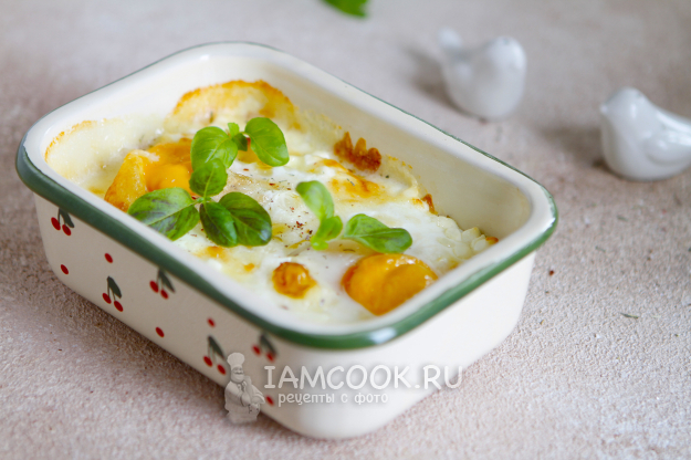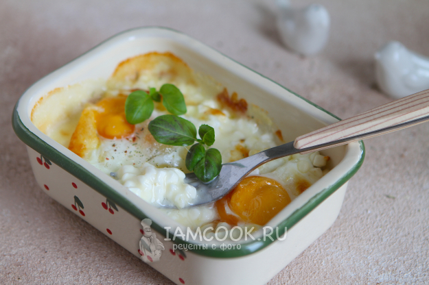 За это время яйца полностью приготовились. Желток получился плотноватым, сыр растаял, а творожные зернышки сохранили свою форму. Но во время еды они с легкостью лопались при надкусывании.