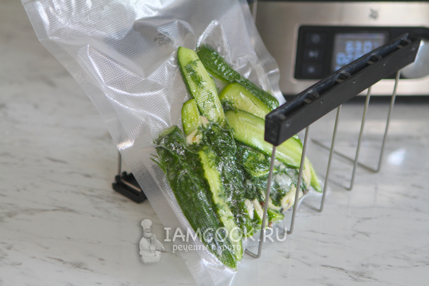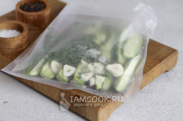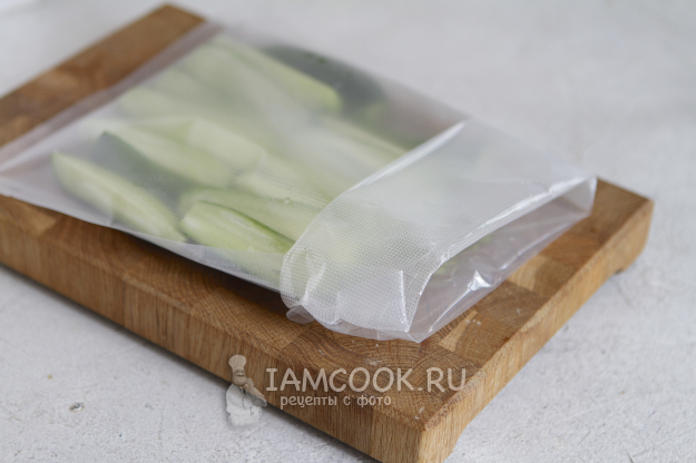 После окончания приготовления необходимо охладить пакет с огурцами.