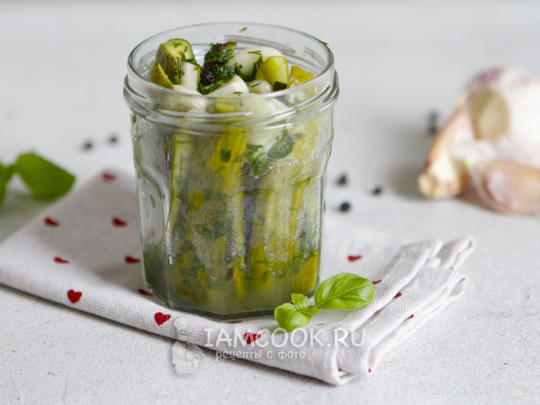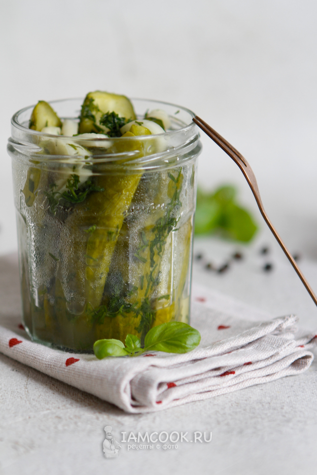 После охлаждения вскройте пакет и переложите огурцы в банку. Если не планируете подавать сразу или вы сделали много заготовок, то лучше хранить огурцы в пакете в холодильнике.
