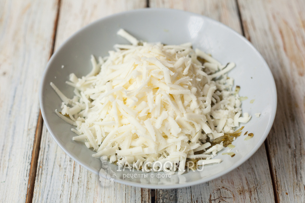 Сыр также натрите на крупной терке и добавьте к огурцам.