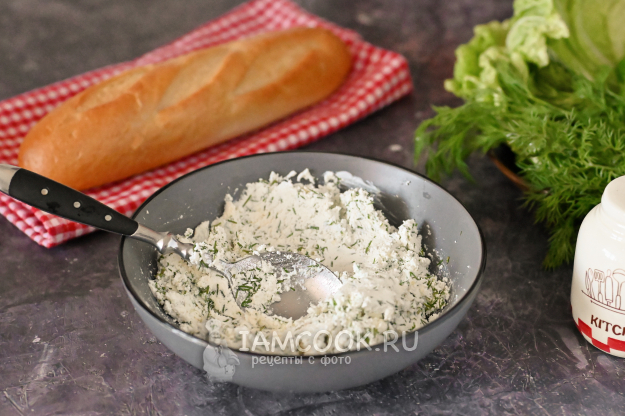 Всё тщательно смешайте до однородной массы. Поскольку творог бывает разной степени влажности, то количество сметаны вам может потребоваться разное. Ориентируйтесь на консистенцию полученной творожной массы. Она должна быть густой и хорошо намазываться на хлеб. Сильно жидкой её делать не нужно, иначе масса не будет держаться на бутербродах.