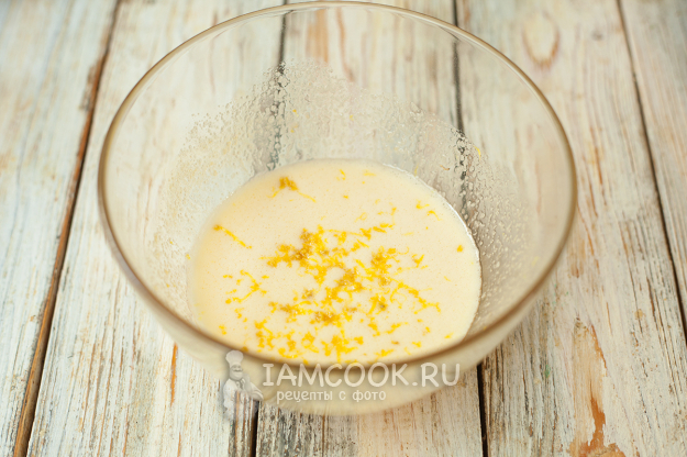 Лимон ошпарьте кипятком и снимите с него цедру при помощи мелкой терки. Добавьте к яично-сахарной смеси.