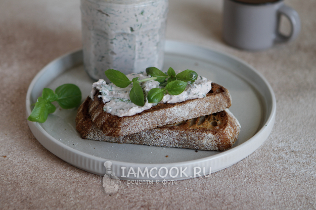 К орехово-сырной намазке поджарьте тосты и подавайте к столу.