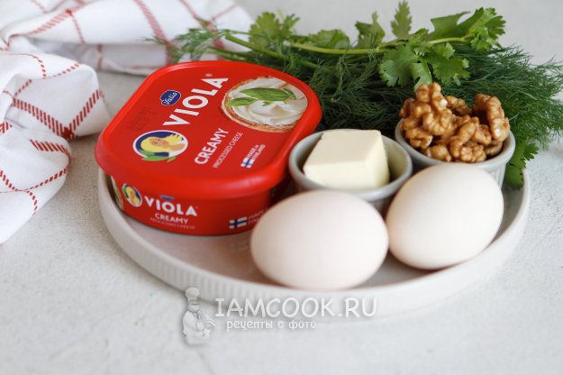 Соберите все ингредиенты и приступим к приготовлению орехово-сырной намазки. Сливочное масло достаньте заранее из холодильника.