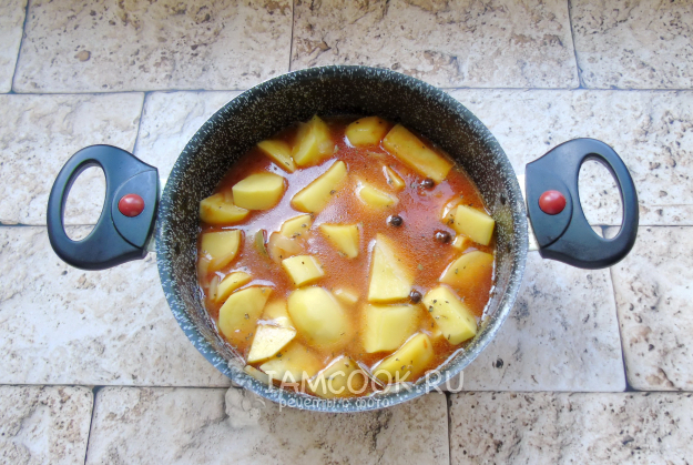Накройте кастрюлю крышкой и готовьте картошку на среднем огне до мягкости.