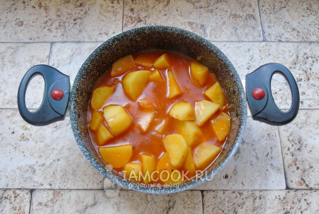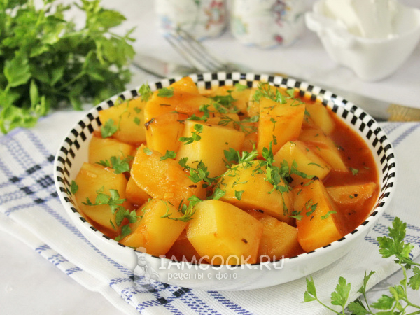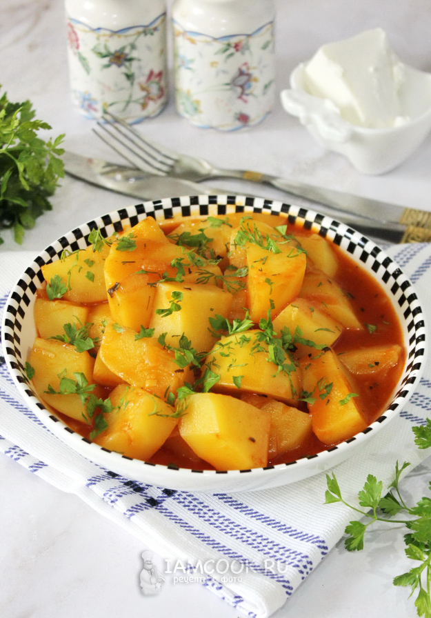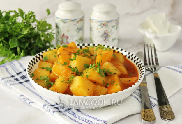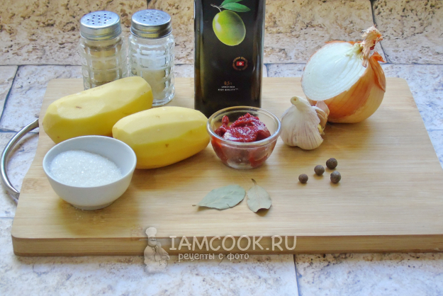 Соберите ингредиенты для приготовления тушеного картофеля по-гречески.