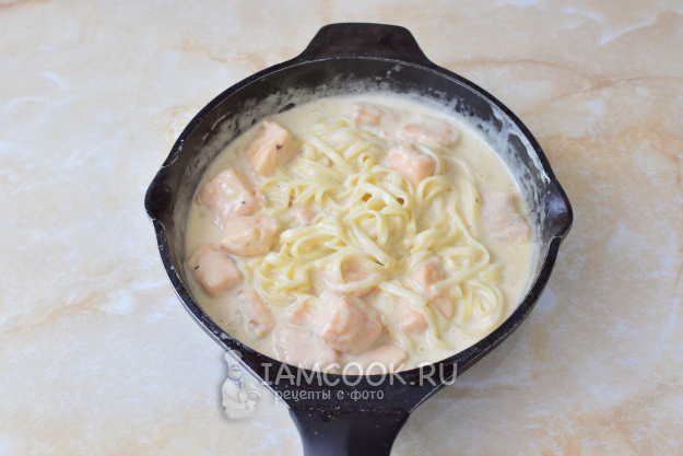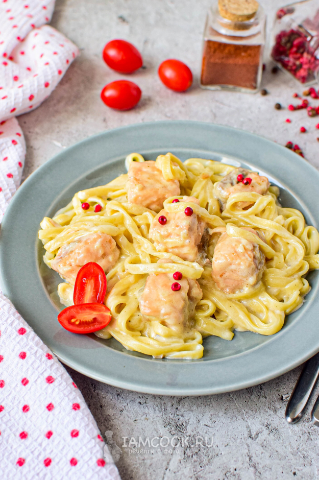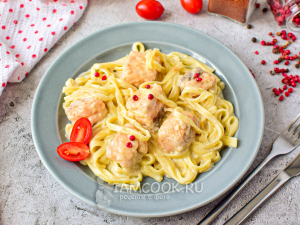 Тальятелле с лососем разложите по тарелкам и подавайте к столу. Приятного аппетита!