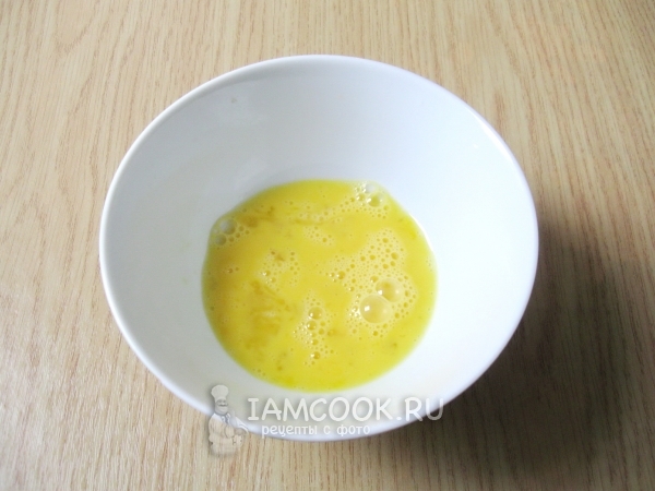 Пока картофель с морковью и луком варятся, приготовим тесто для клецек. В миску разбиваем яйцо. Немного взбалтываем его.