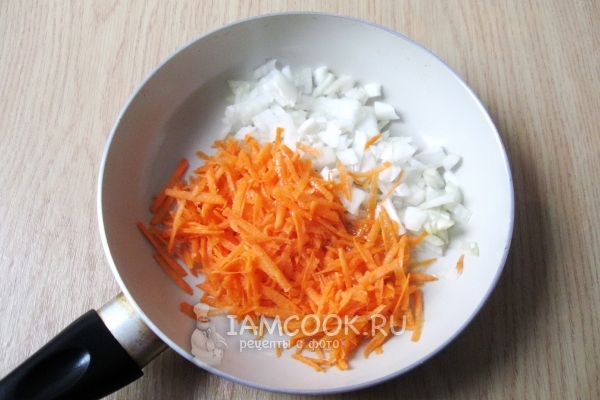 Морковь и лук чистим, моем. Лук мелко режем, а морковь режем или трем на терке.