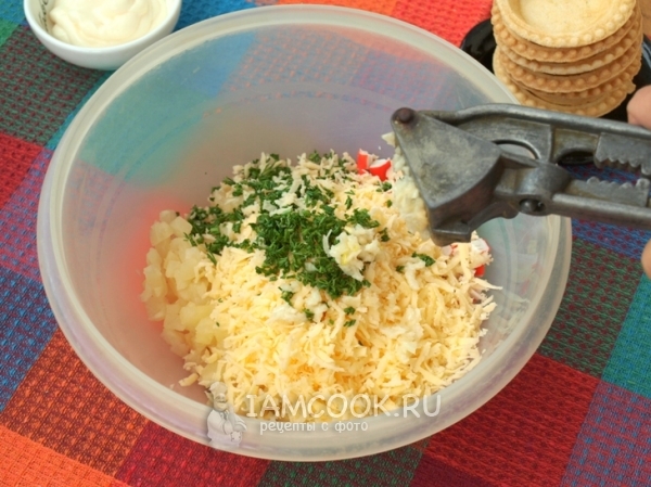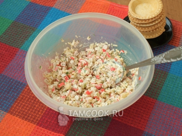 Тарталетки с крабовыми палочками и консервированным ананасом
