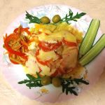 Для приготовления куриного филе по-французски будем использовать следующие продукты: грудки куриные, масло растительное, картофель, помидоры, соль и специи, сыр твердый и лук репчатый.