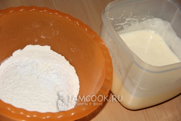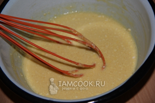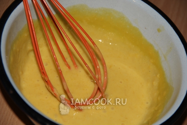 Хорошо перетереть венчиком желтки с мукой до однородного состояния.