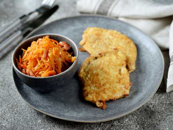 На мясо с луком и морковью выложите слой квашеной капусты, не перемешивайте!