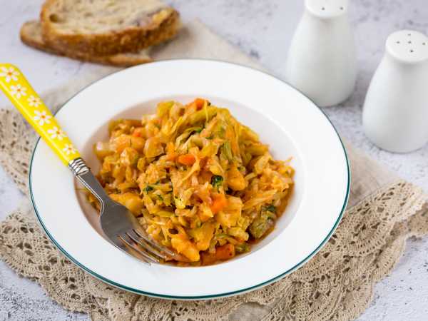 Готовьте капусту с мясом на программе "Тушение" примерно 45 минут. Минут за 15 до сигнала мультиварки перемешайте капусту и готовьте оставшееся время.