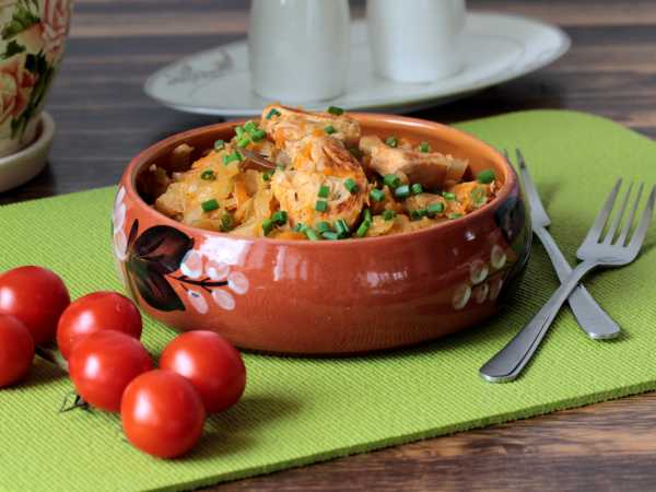 На слой квашеной капусты выложите капусту свежую (нарезанную как на борщ). Не перемешивайте капусту, пусть так слоем и лежит. Так как готовится квашеная капуста дольше, чем свежая, то ей лучше быть пониже слоем. Добавьте томатную пасту и влейте горячую воду, в которой предварительно разведите соль, не много, с учётом слои в мясе и в квашеной капусте.