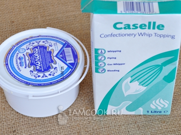 Для крема понадобятся растительные сливки и немного сгущённого молока.