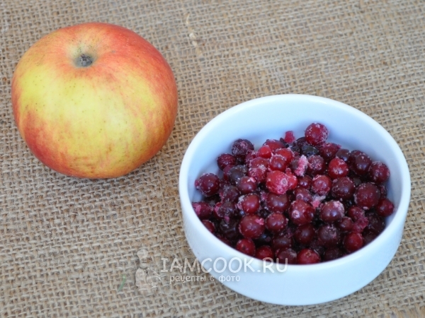 Клюква у меня замороженная я её просто промою под холодной водой и удалю листики. Яблоко будем чистить и удалим серединку.