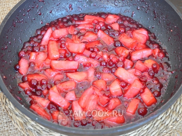 Добавим клюкву и подержим пару минут. Только сироп начнёт густеть снять сковороду с огня. Оставить остывать до комнатной температуры.