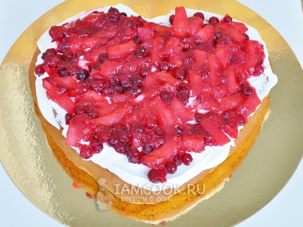 Выкладываем остывшую яблочно-клюквенную начинку и сверху ещё немного крема.