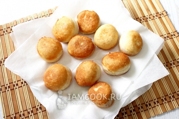 Разогреваем растительное масло в подходящей посуде. При обжаривании пончики должны быть погружены в масло наполовину. Обжариваем пончики с каждой стороны по 2-3 минуты, огонь должен быть небольшим.