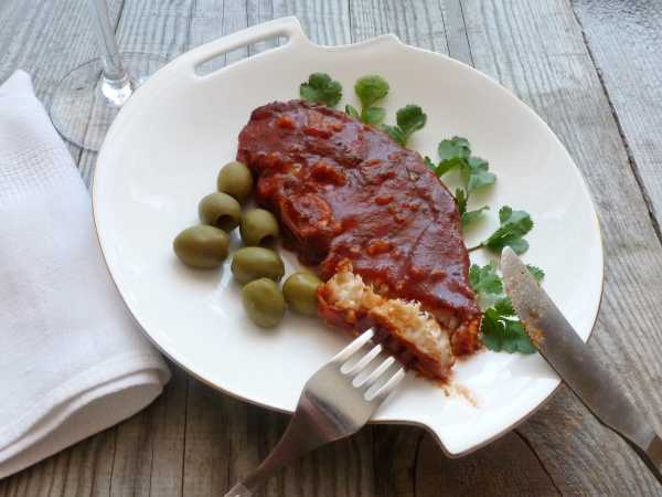 Из томатного соуса, вина, чеснока и трав приготовить соус-заливку.