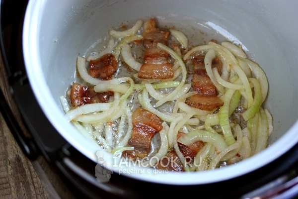 Теперь продолжайте жарить сало с луком, пока он не обжарится слегка, не "обмякнет".